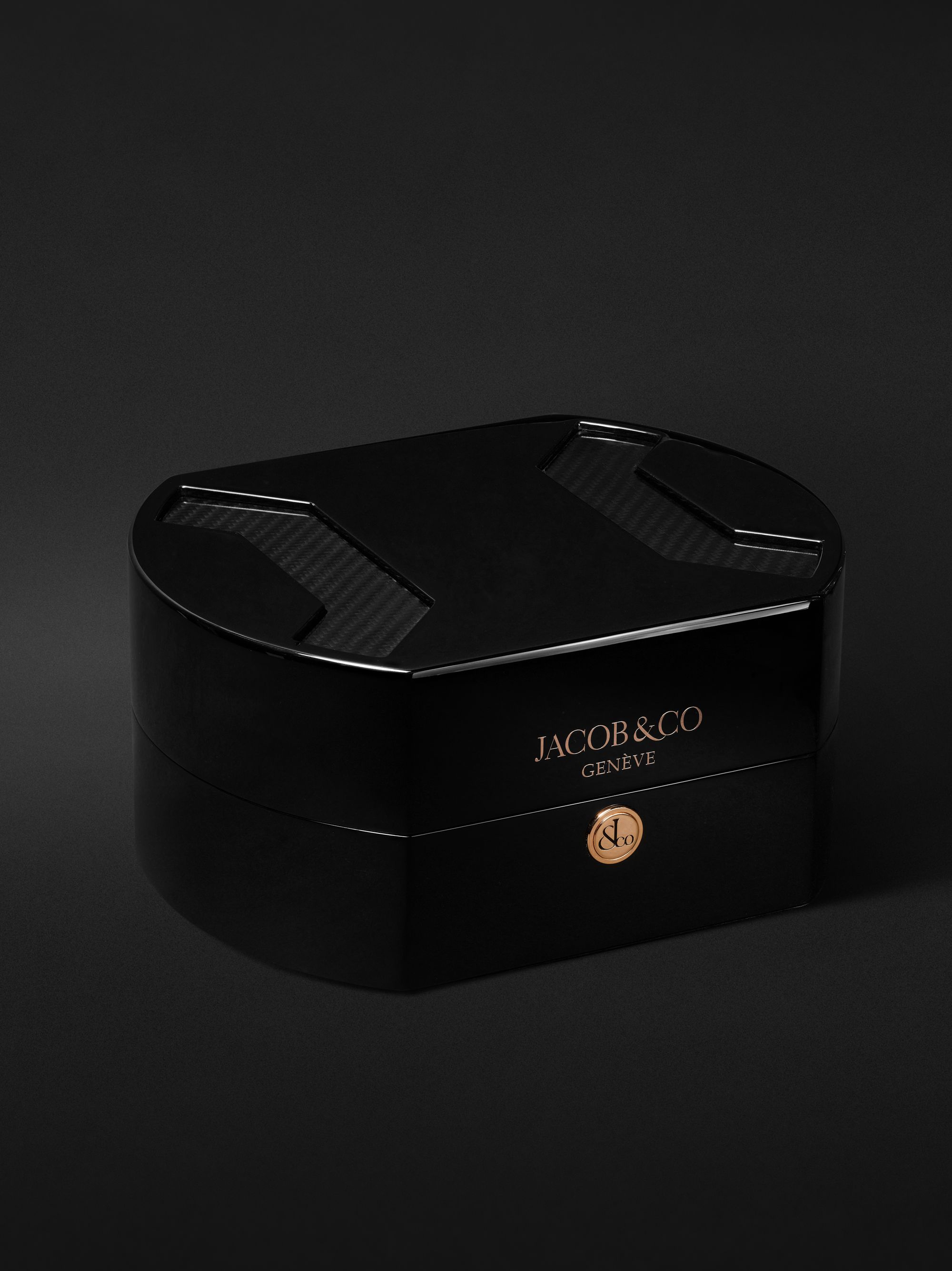 JACOB & CO. Epic X Skeleton Chronograph 44 mm Uhr aus DLC-beschichtetem Edelstahl mit Handaufzug und Kautschukarmband in limitierter Auflage, Ref.-Nr.: EX120.11.AI.AA.ABRUA
