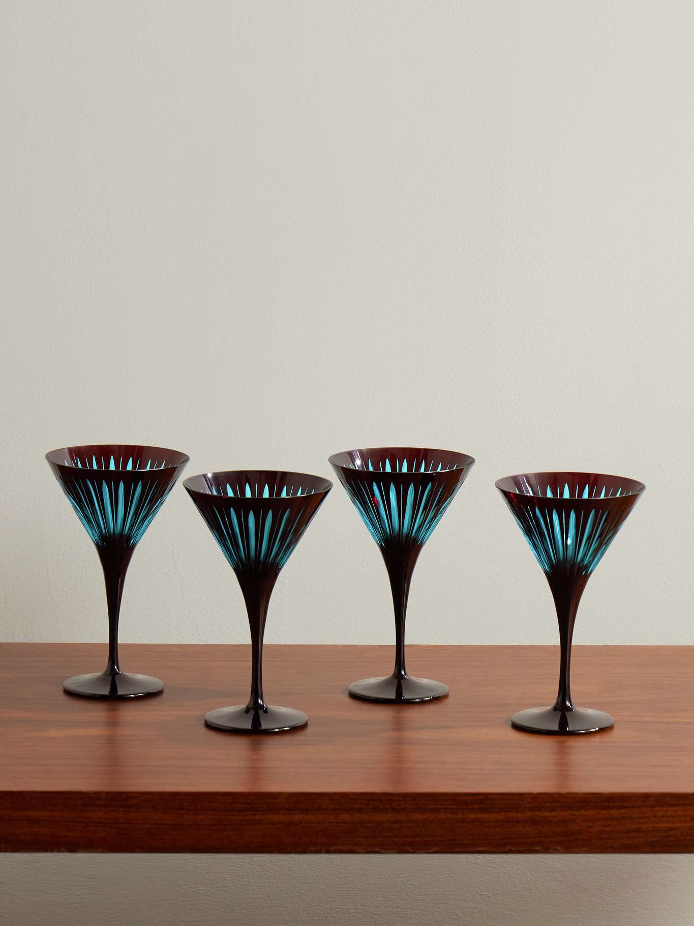 - Glas in Blau und Bordeauxrot