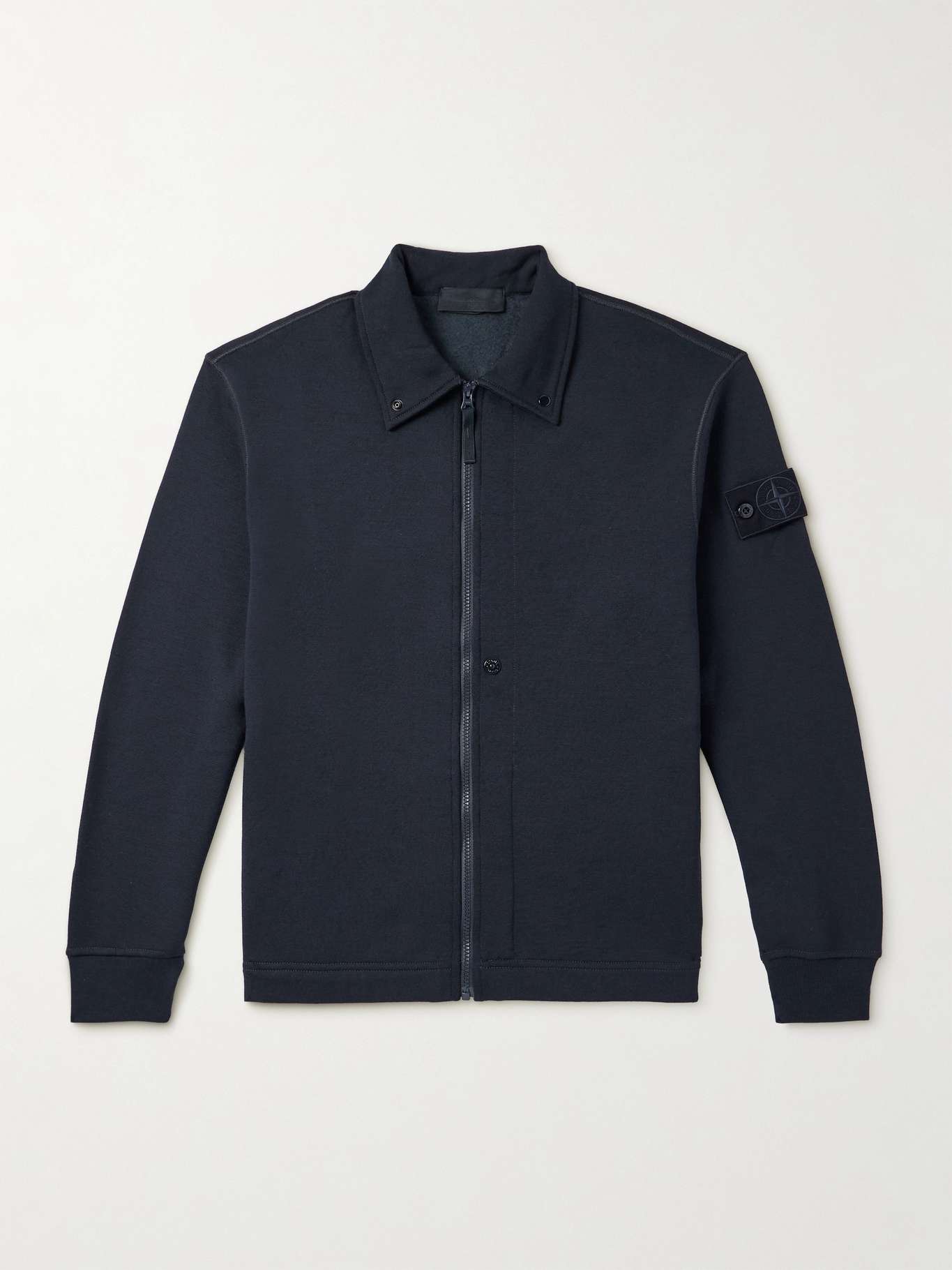 - Dunkelblauer Jersey aus einer Woll-Baumwollmischung