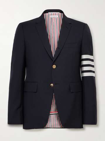 Der amerikanische Designer Thom Browne gründete seine nach ihm benannte Marke, die für unverwechselbare Schneiderkunst bekannt ist, im Jahr 2001. Mit verkürzten Schnitte und einer Farbpalette, die hauptsächlich aus Grau und Dunkelblau besteht, entwirft das Unternehmen smarte, hochwertige Basics, die sich häufig verspielt oder im College-Stil zeigen.