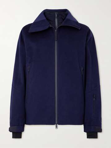 Wandelbare Skijacke aus „Oasi“-Kaschmir mit Lederbesatz, Kapuze und gesteppter Daunenweste