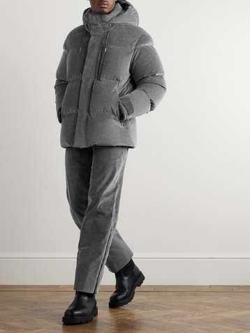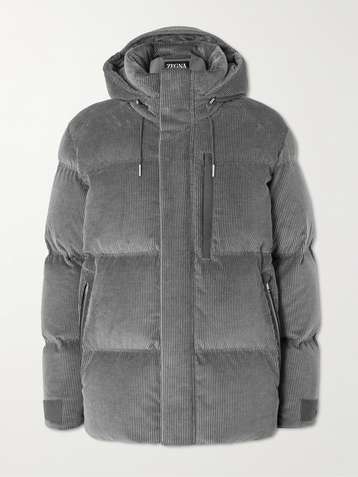 Skijacke aus Cord aus einer Baumwollmischung mit Daunenfüllung und Kapuze