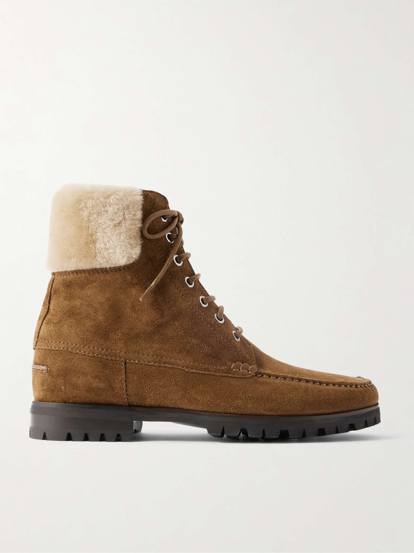 MANOLO BLAHNIK Sycamore Stiefel aus Veloursleder mit Shearling-Besatz
