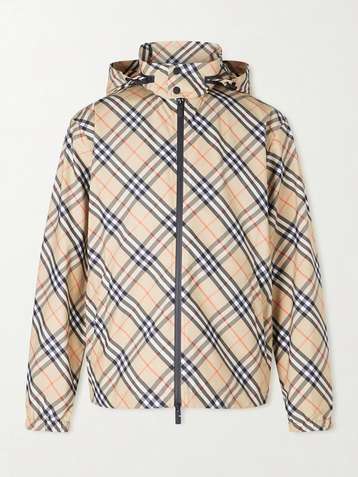 Reversible Logo-Embroidered Checked Twill and Shell Hooded Jacket