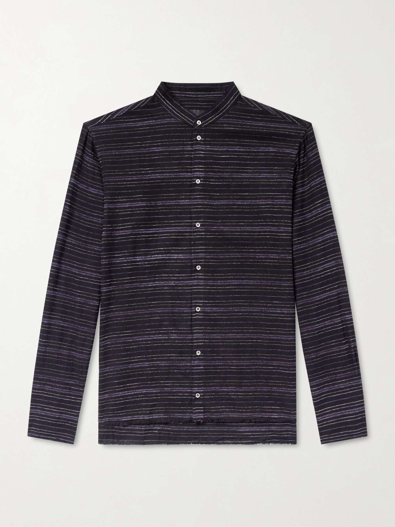 424 + HOORSENBUHS Embroidered Striped Cotton-Blend Flannel Shirt