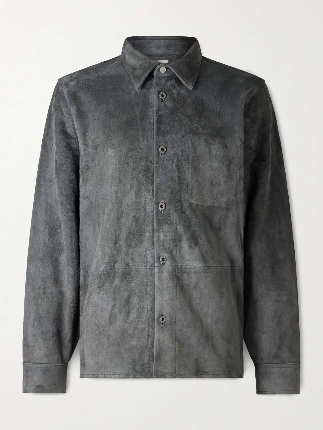 Aimé Leon Dore's shirt is tailored from suede, but a fine variety, so there's no bulk. It's tailored for a classic fit and layers well over T-shirts.