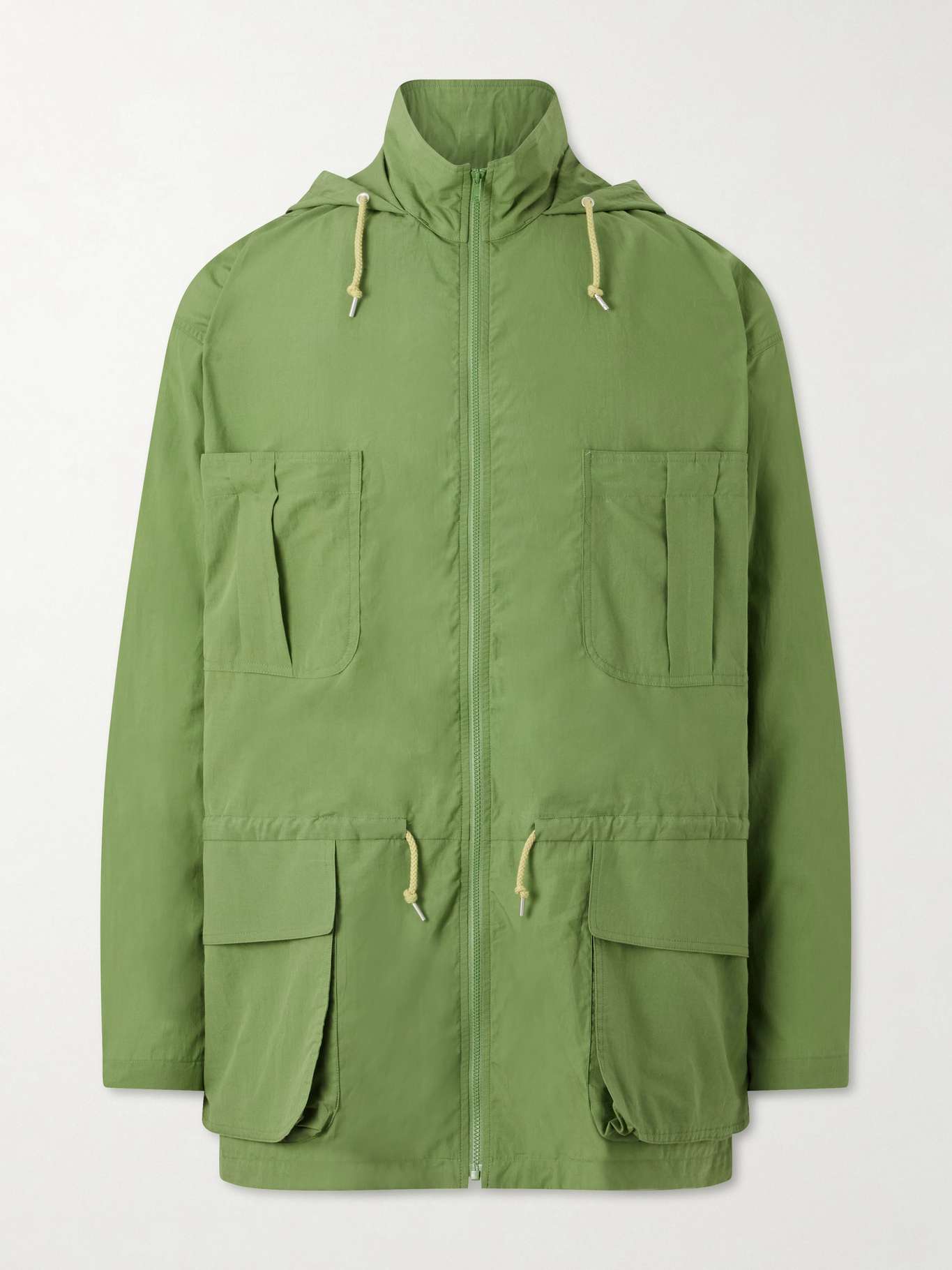 Auralee's blouson draws on parka detailing and utilitarian aesthetics, cut from lightweight cotton poplin in an oversized fit. It features pleated flap pockets at the front, while drawstrings at the hood and waist allow for adjustable fit. The fabric’s elegant sheerness lends itself to layered looks over printed shirts and tops.