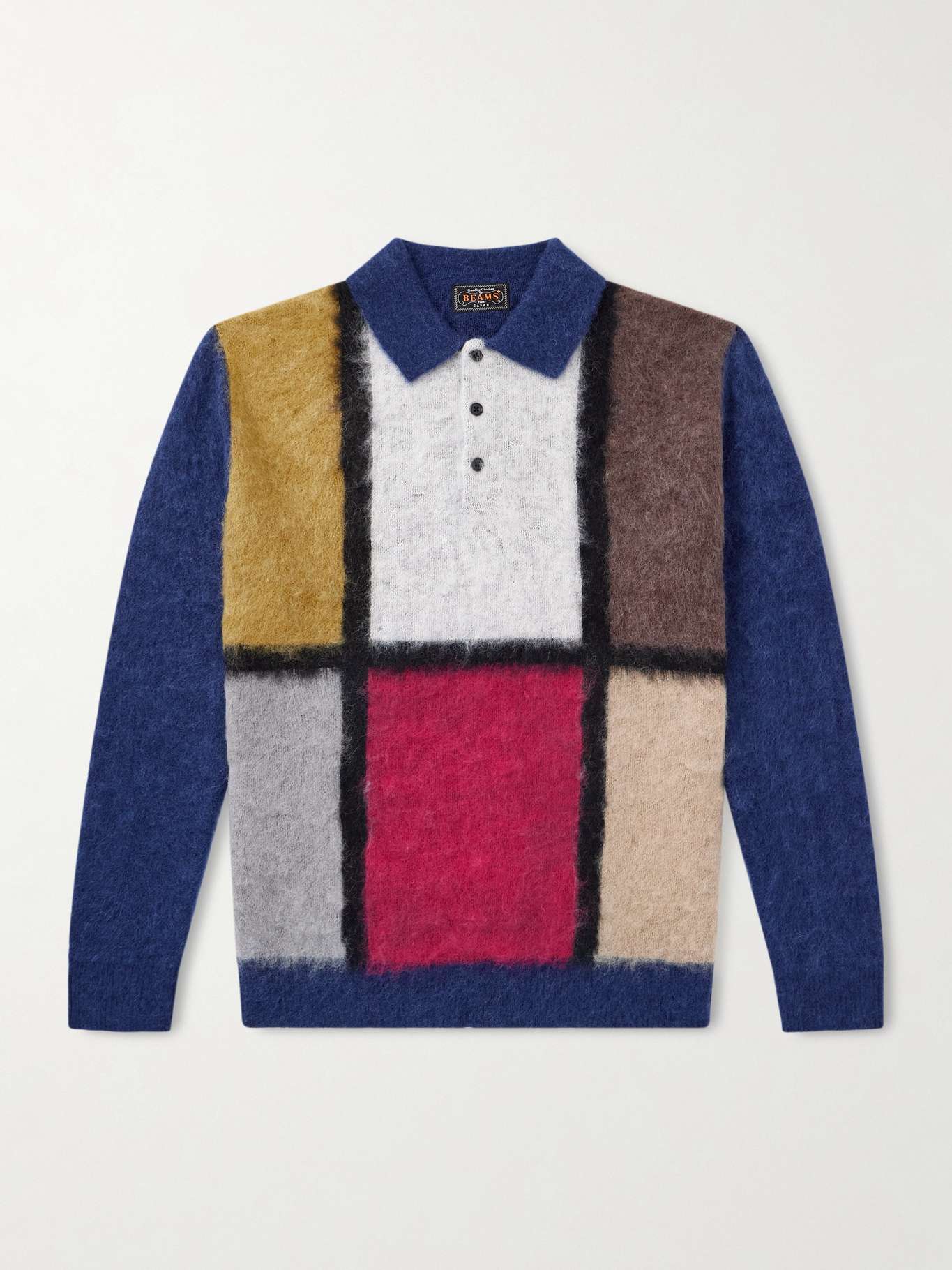Artful reinterpretations of wardrobe classics have earned BEAMS PLUS a loyal following. This polo-inspired sweater is knitted on 9-gauge looms from mixed yarns woven with wool and mohair for a fuzzy, tactile finish. The colour-block palette nods to the label's artistic influences.