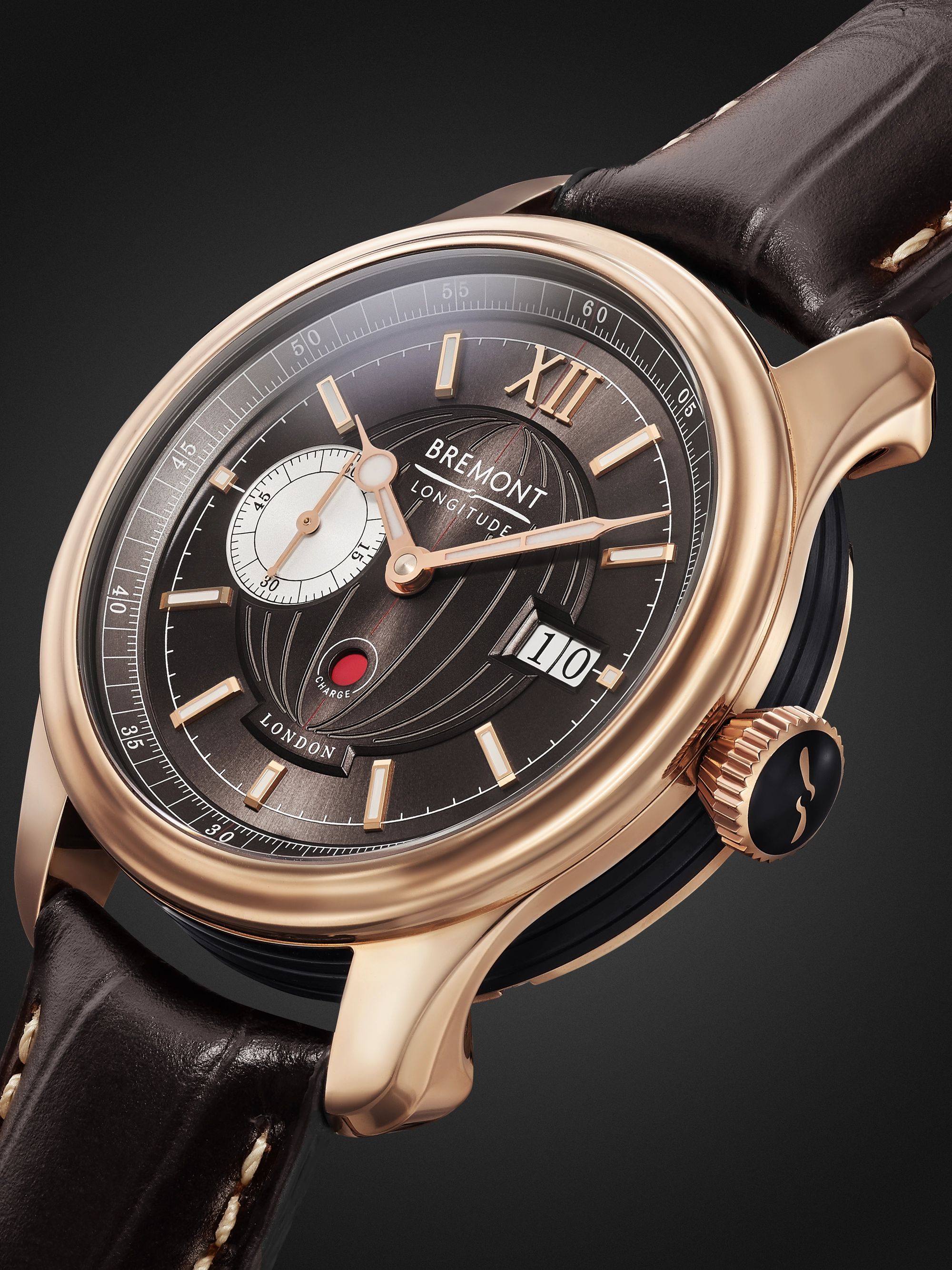 BREMONT Longitude Limited Edition Automatic 40mm 18-Karat Rose Gold and Croc-Effect Leather Watch, Ref. No. LONGITUDE-RG