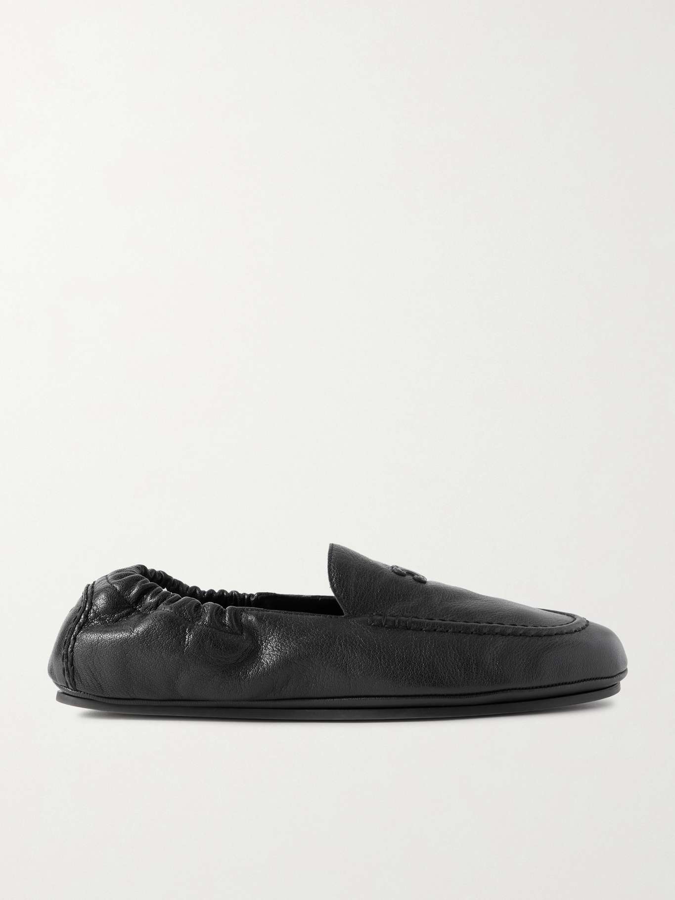 CELINE's loafers are appliquéd with the signature 'Triomphe' logo. They're made from soft leather with moccasin stitching on the toes and have elasticated backs that allow for a comfortable fit.