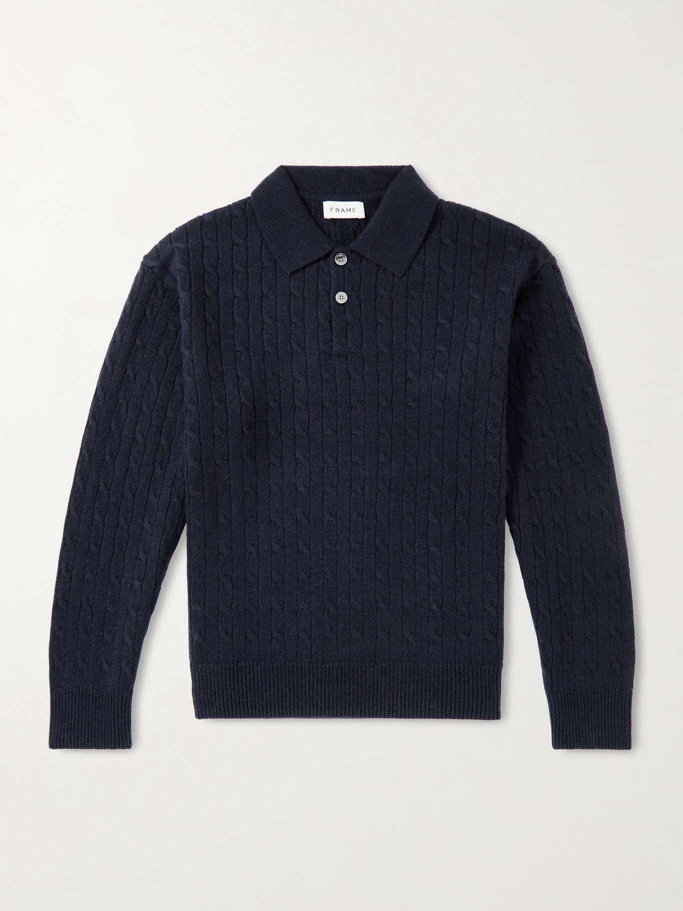 FRAME Cable-Knit Wool and Cashmere-Blend Polo Sweater