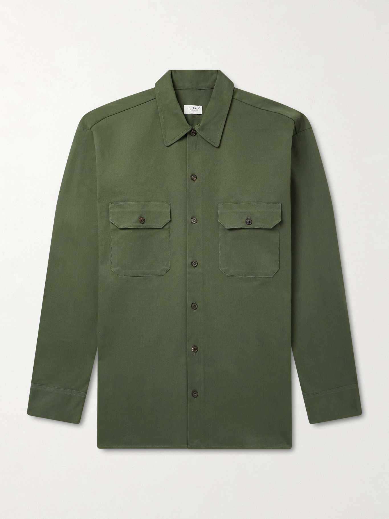 Ghiaia Cashmere draws inspiration from both the serenity of the Sicilian sea and life in Pasadena, where the brand is based. Also taking cues from humble workwear, this shirt is cut from cotton-twill that's naturally slightly stretchy. The green shade will go with plenty.