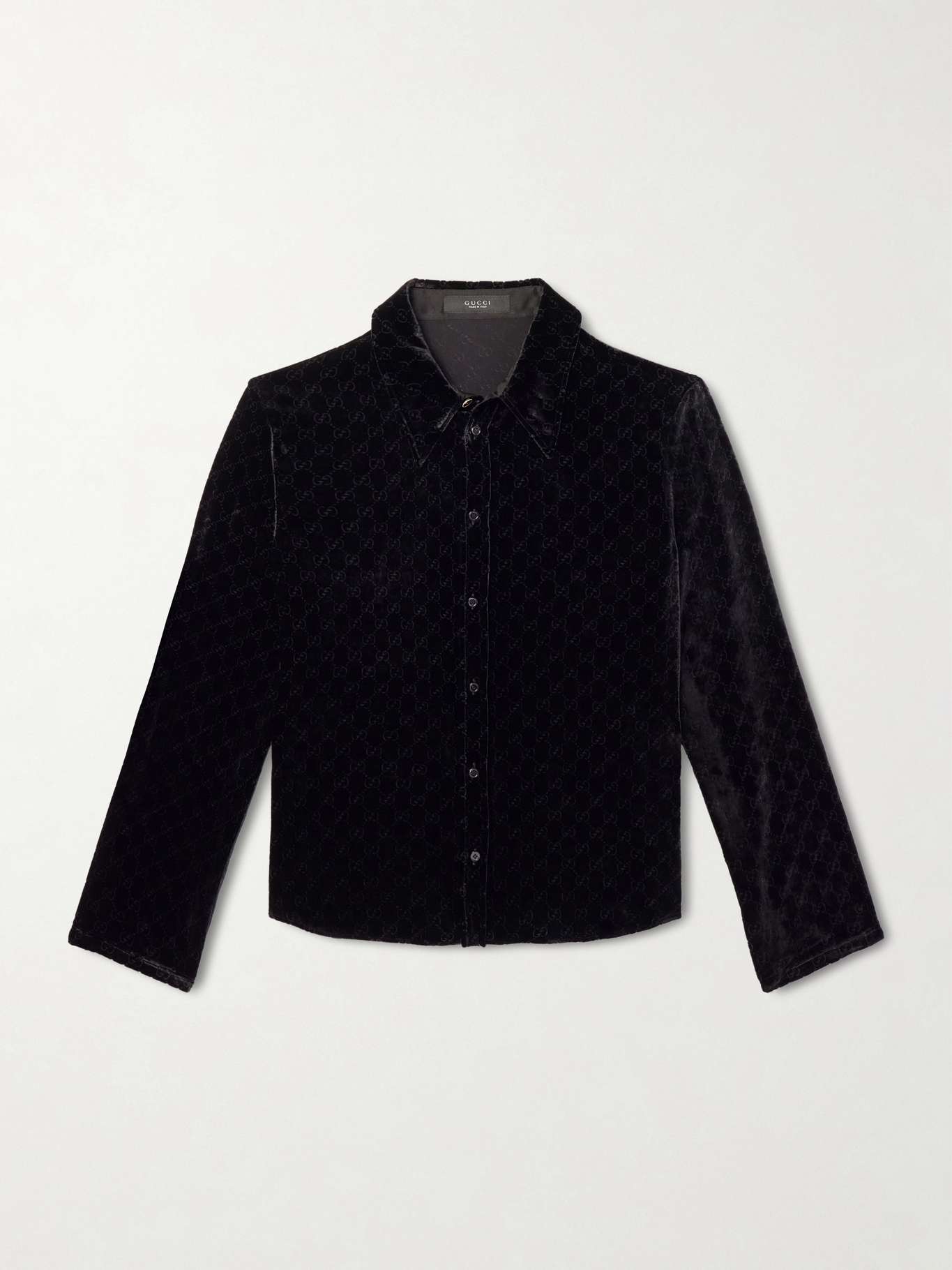 GUCCI Slim-Fit Logo-Devoré Velvet Shirt