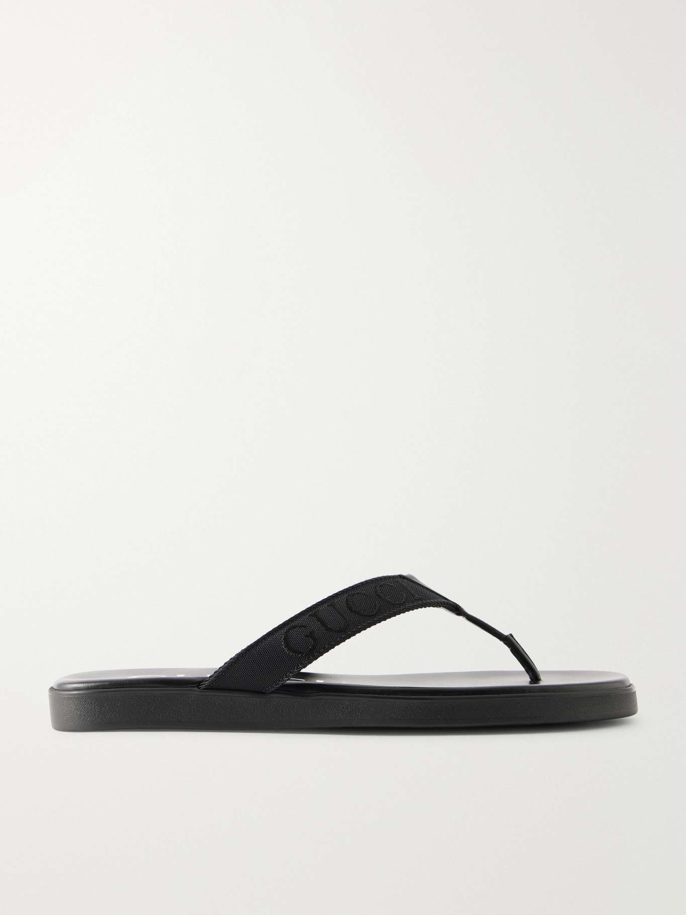 GUCCI Logo-Jacquard Leather-Trimmed Canvas Flip Flops