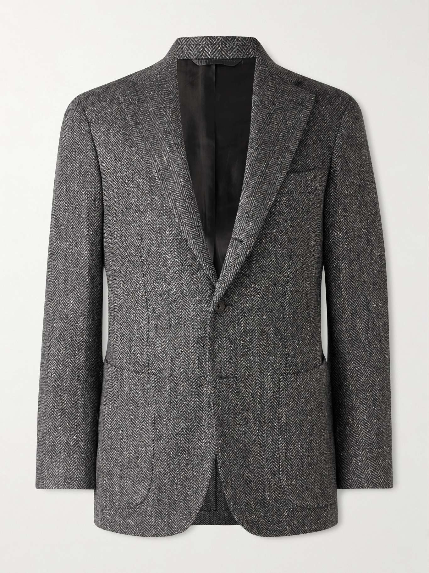Designer Jake Mueser experiments with subtle patterns and textures in his tailoring. In a classic herringbone motif, this 'Waverly' blazer is cut from wool and woven with tonal-grey threads for depth and dimension.