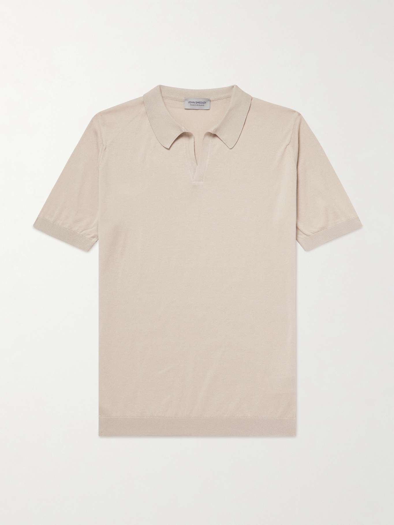 John Smedley's 'Noah' polo takes cues from nautical styles with an open skipper collar. It's knitted from Sea Island cotton - one of the softest of its kind – in a fine, 30-gauge stitch.
