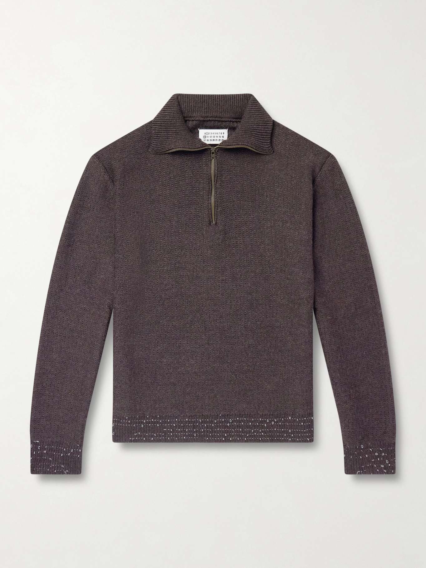 MAISON MARGIELA Embroidered Stretch-Wool Half-Zip Sweater