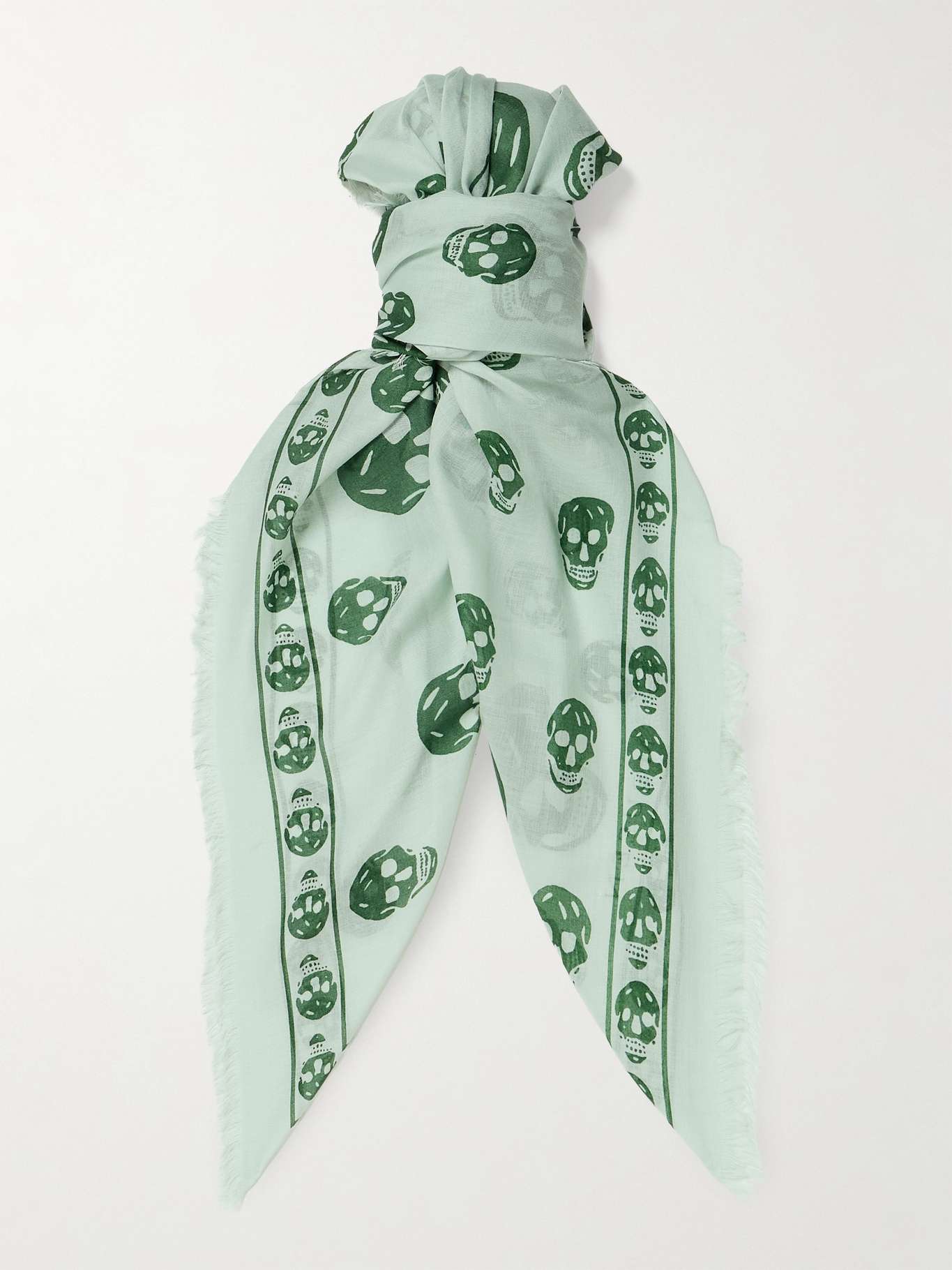 Alexander McQueen's skull scarf has been a signature of the house since SS03. This version is made from an airy blend of modal and silk with wispy frayed edges. It's long enough to be styled knotted and loose or wrapped a few times round your neck.