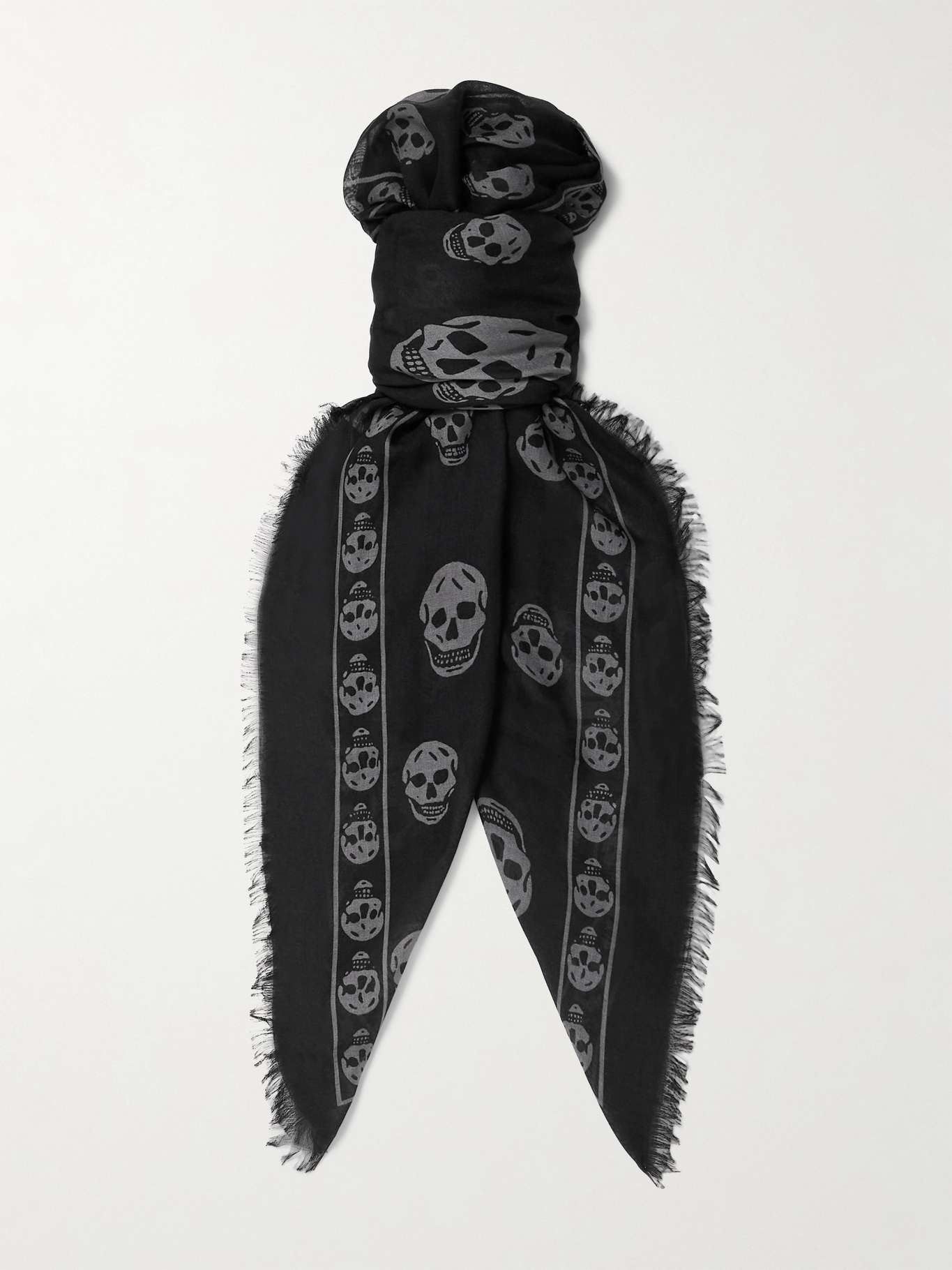 Alexander McQueen's skull scarf has been a signature of the house since SS03. This version is made from an airy blend of modal and silk with wispy frayed edges. It's long enough to be styled knotted and loose or wrapped a few times round your neck.