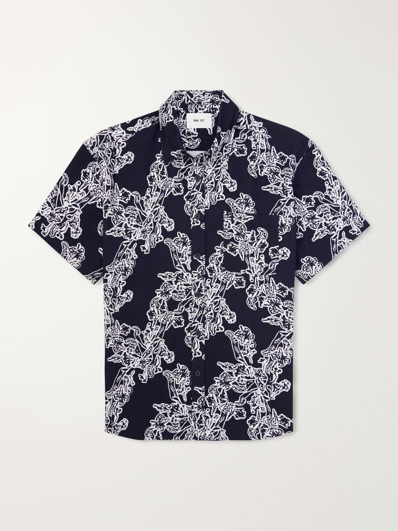 Cut in a relaxed short-sleeve profile, NN07’s ‘Deon Print 50055’ shirt is rendered in a monochrome print for graphic clarity. Crafted from lightweight fabric with a smooth handle, it’s finished with a clean placket that keeps the statement measured rather than loud.
