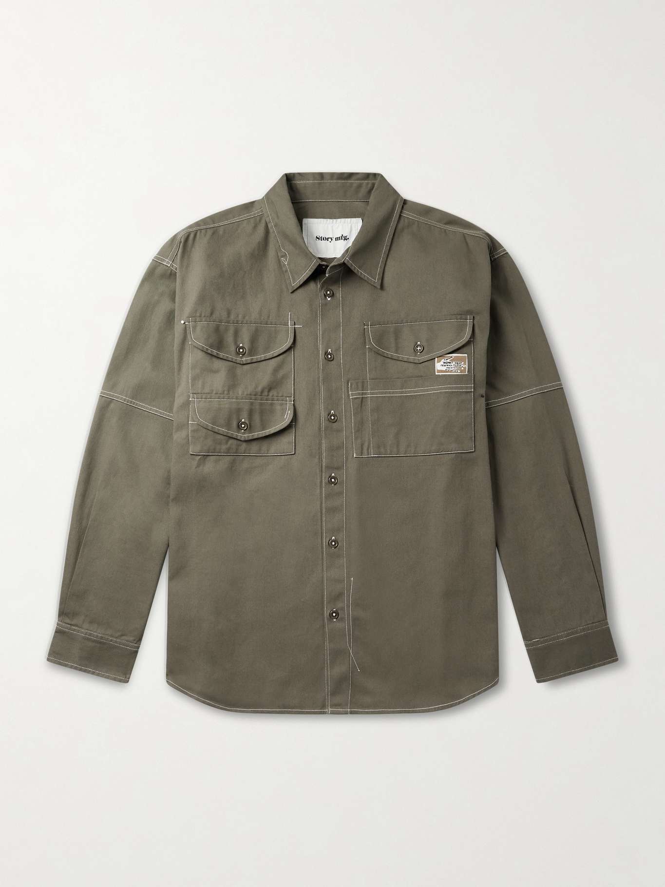 Designed as part of Story Mfg.'s 'Wonky-Wear' capsule that champions the imperfections of vintage workwear, this 'Harvest' shirt has a utilitarian spirit. It's cut for a relaxed fit from organic cotton-twill and has buttoned cuffs, a back box pleat and a curved hem. The trio of pockets nods to the styles that inspired it.