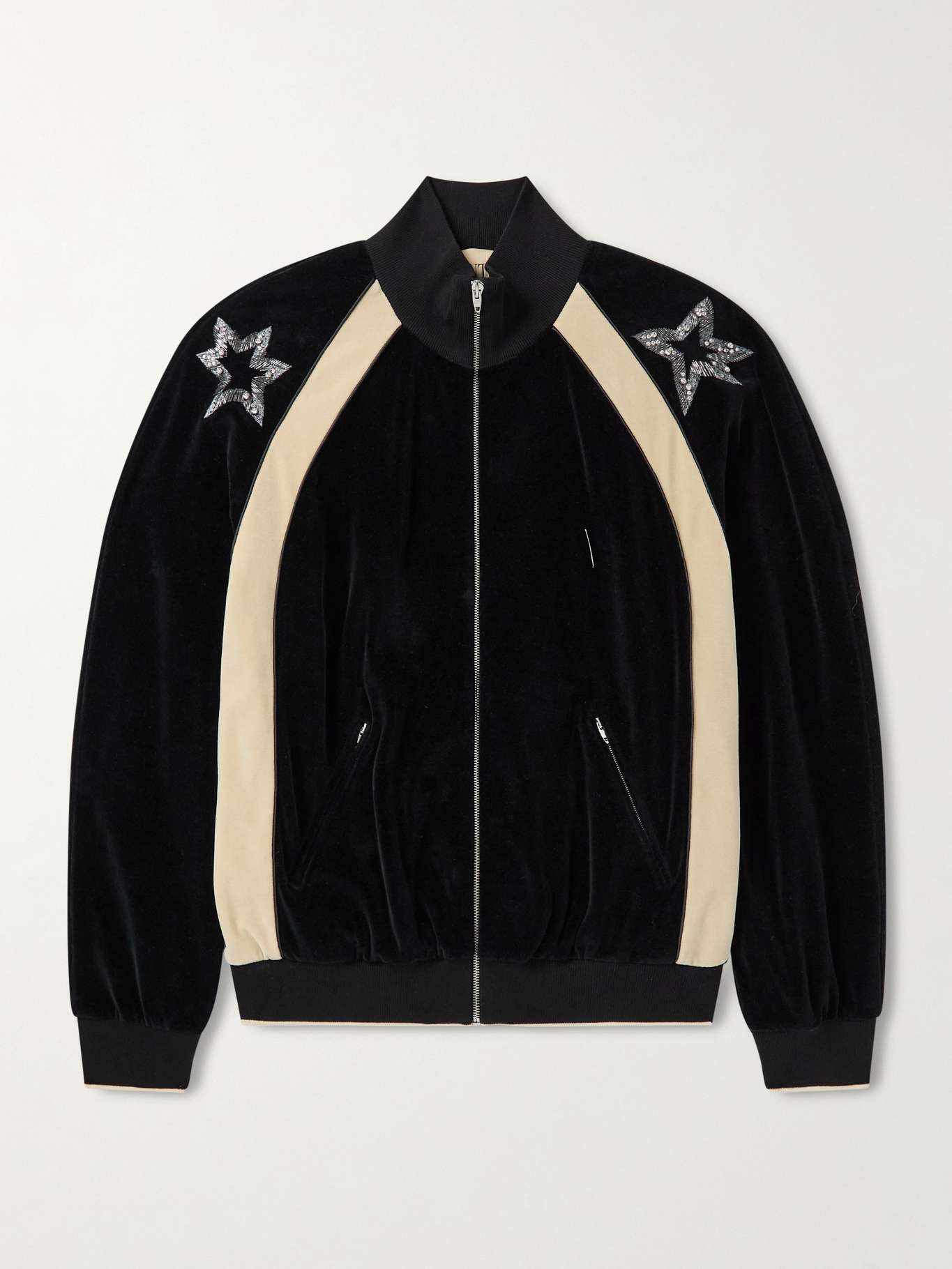 Valentino Garavani's track jacket is a flashy take on the sporty staple. Detailed with beaded, crystal-embellished stars, it's made from soft cotton-blend velour and traced with contrasting panels for a two-tone finish.