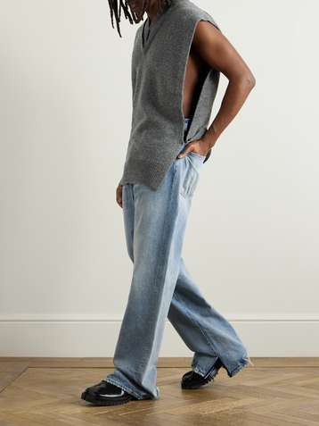 Wide-Leg Distressed Jeans