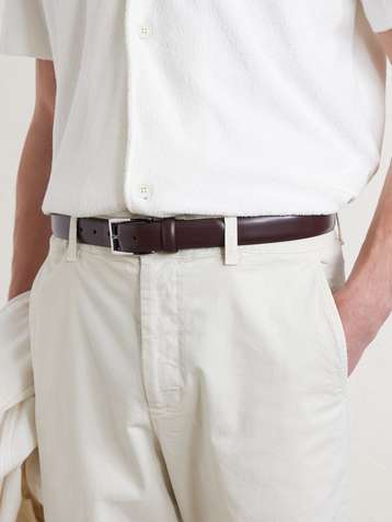 3.5cm Brown Leather-Trimmed Woven Elastic Belt