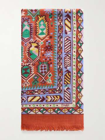 Frayed Printed Wool and Silk-Blend Scarf