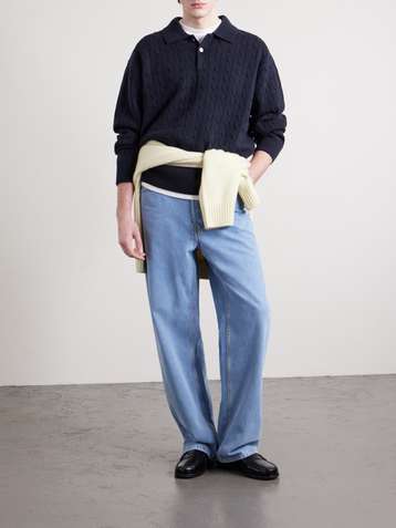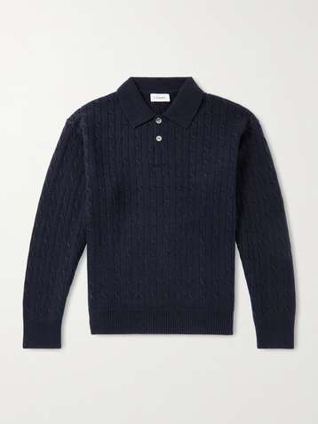 Cable-Knit Wool and Cashmere-Blend Polo Sweater