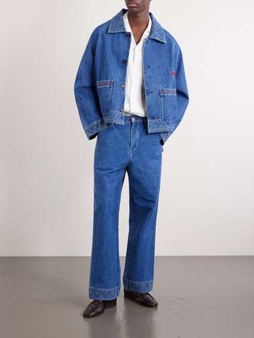 Embroidered Merino Wool-Blend Denim Jacket