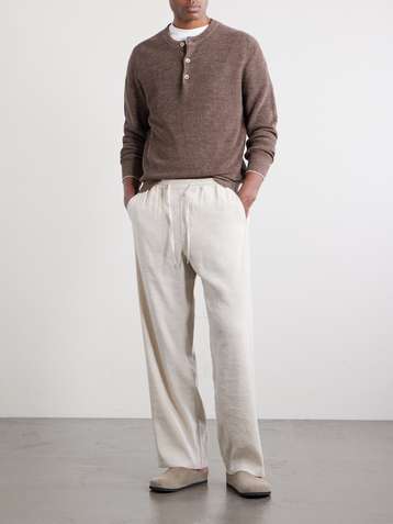 Straight-Leg Linen-Twill Drawstring Trousers