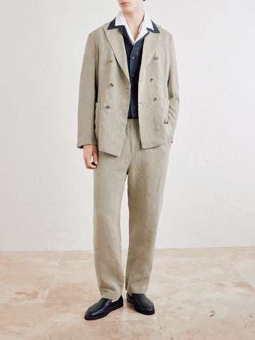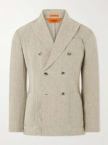 Unstructured Double-Breasted Linen-Blend Suit Jacket