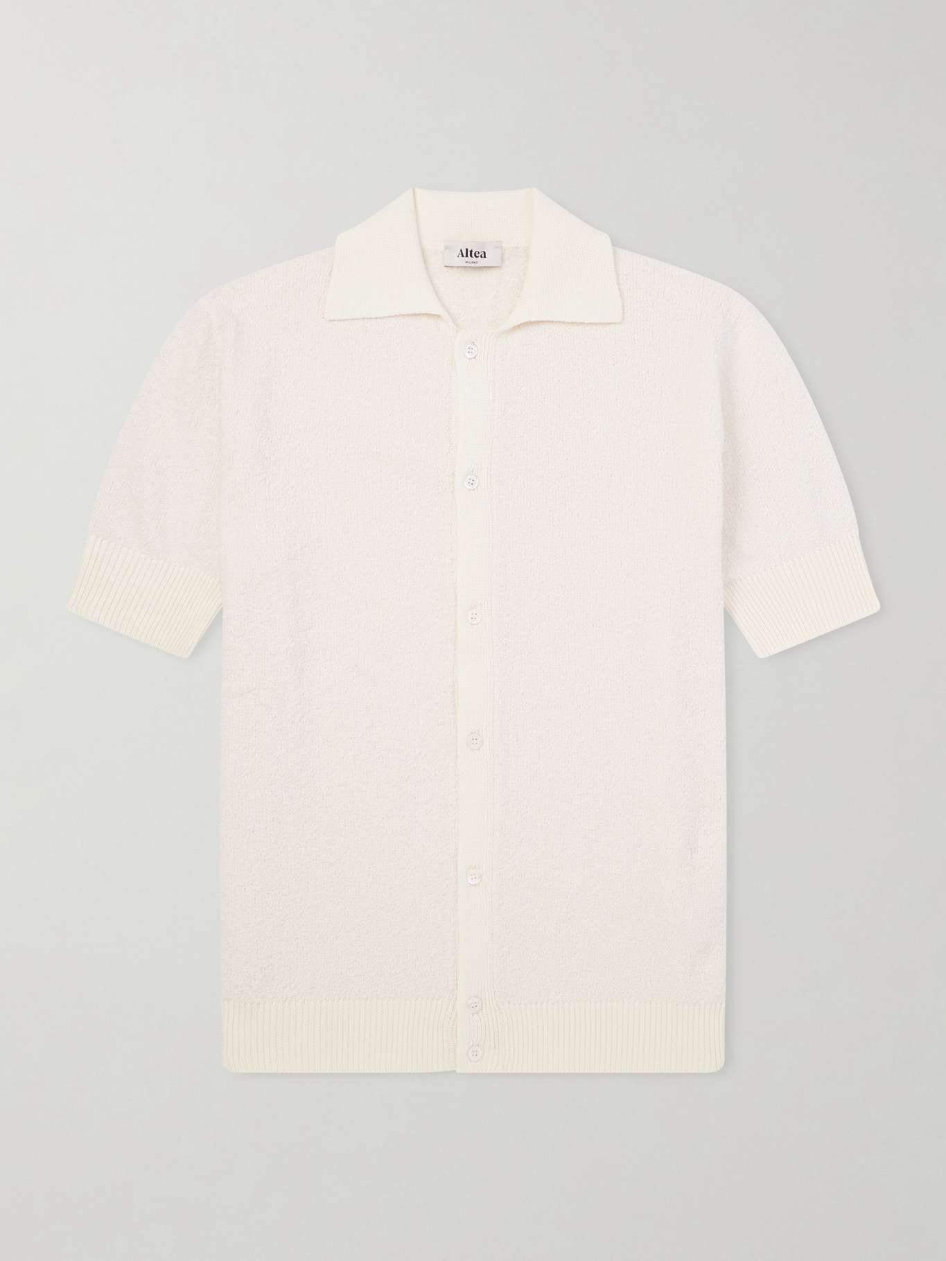 In the thirteen decades Altea has been in business, it's whittled down its list of fabrics to only the most comfortable. This shirt is cut from plush cotton-blend terry with a ribbed spread collar, cuffs and button placket. It fastens with glossy mother-of-pearl buttons.