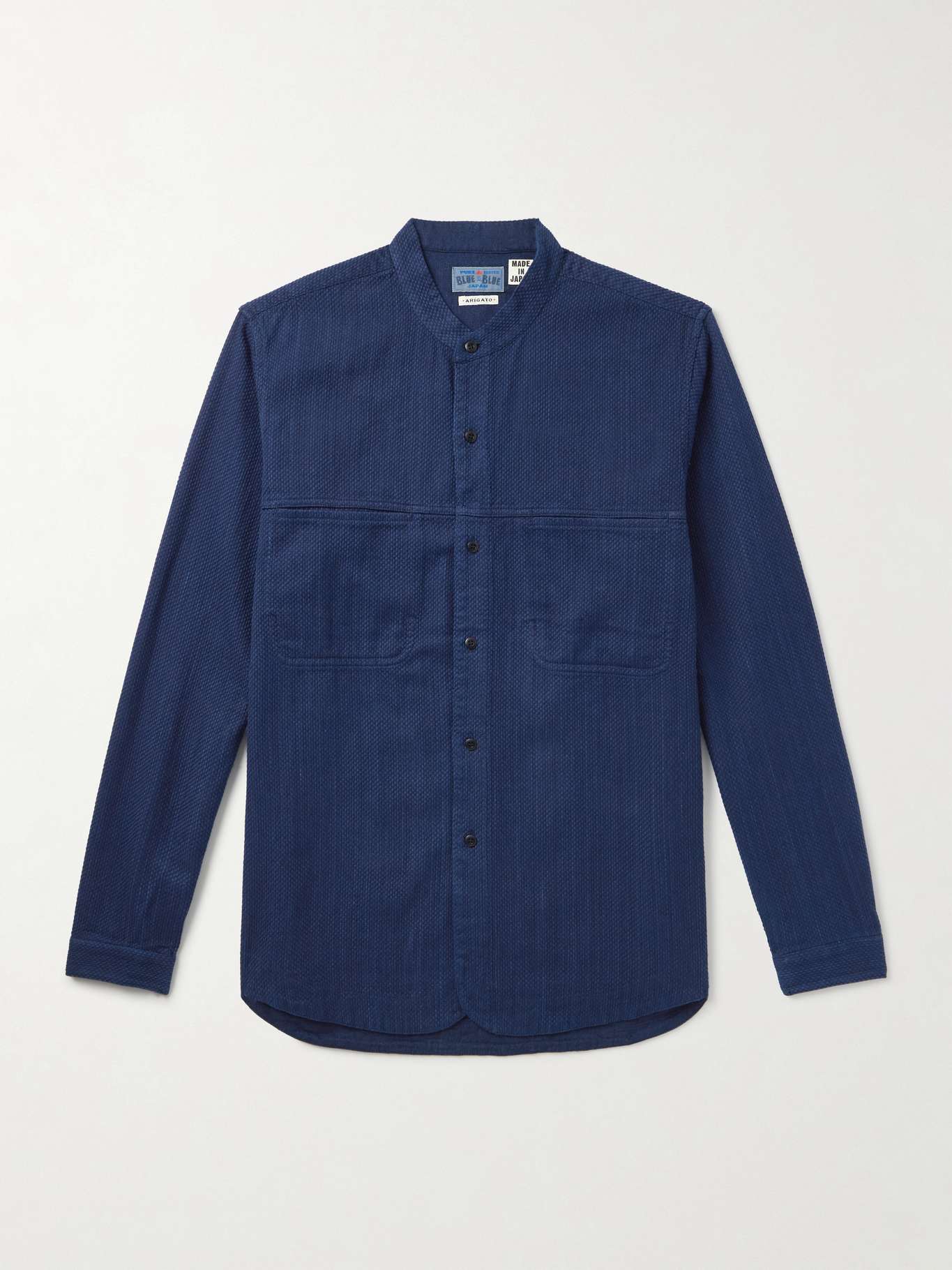 BLUE BLUE JAPAN Grandad-Collar Textured-Cotton Shirt