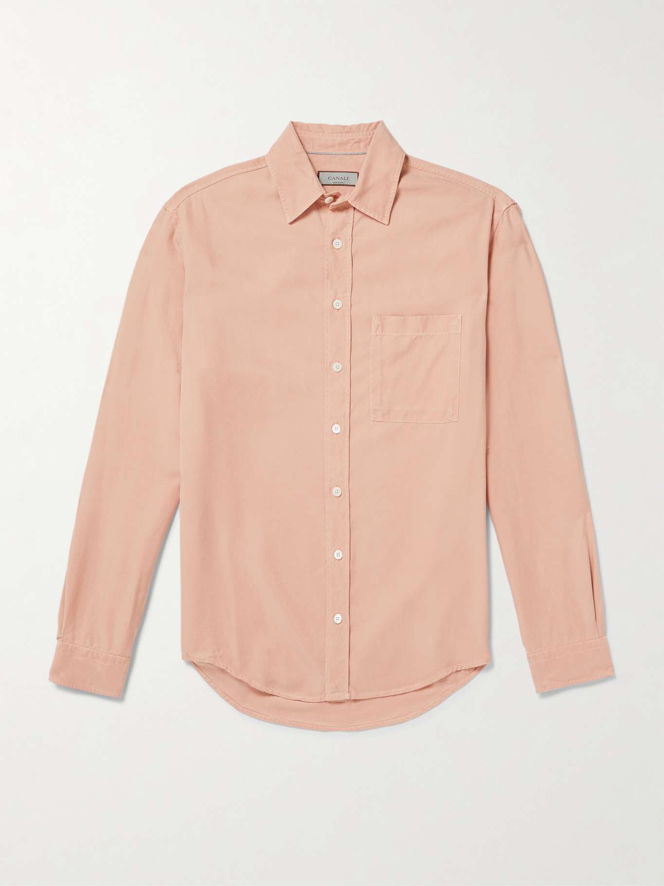 Canali's shirt is garment-dyed for a softer handle, so it'll feel like an old favourite the first time you wear it. It's made from lightweight Lyocell-twill with a classic collar and chest patch pocket.