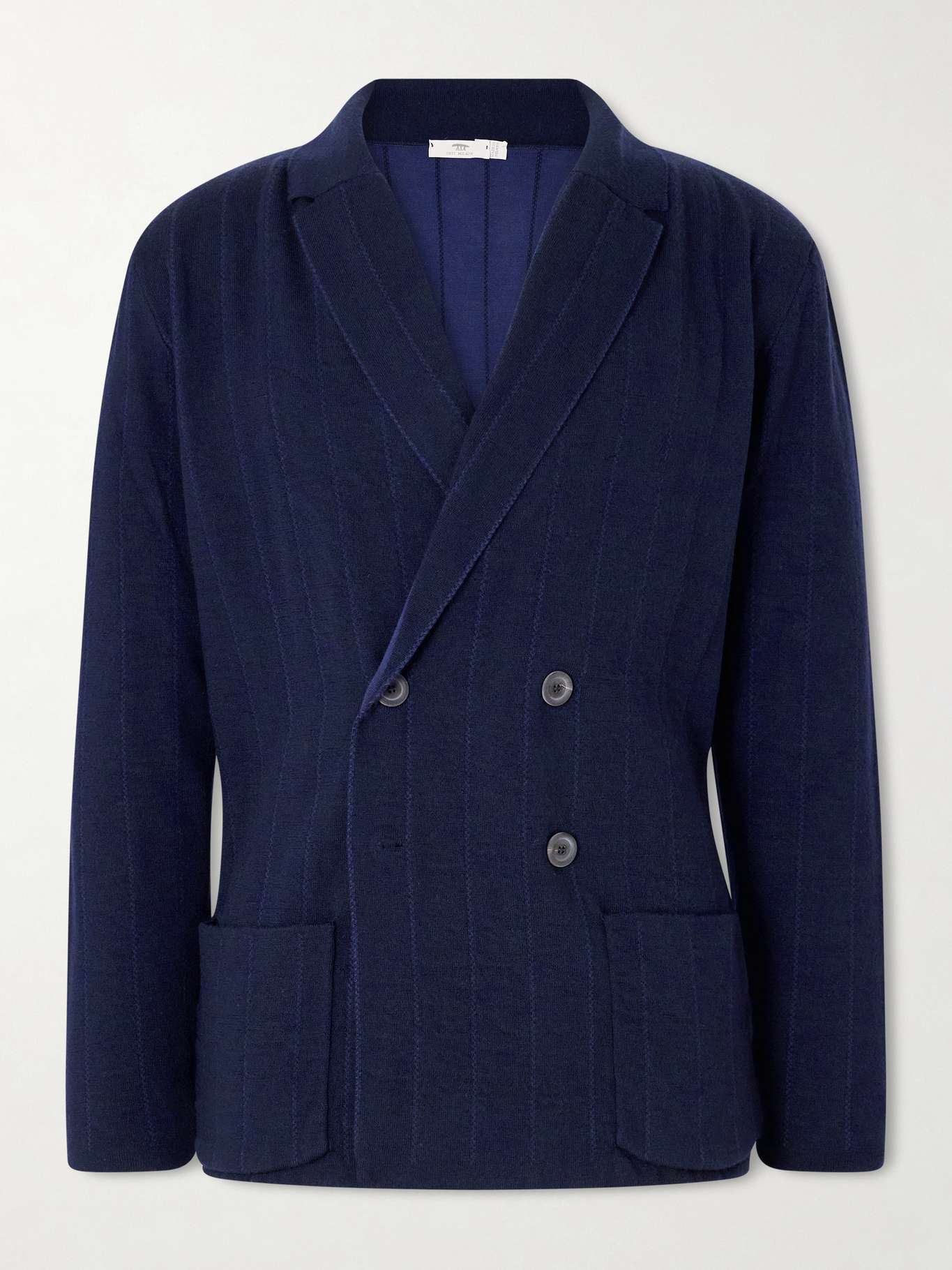 INIS MEÁIN Double-Breasted Striped Wool, Cashmere and Cotton-Blend Blazer