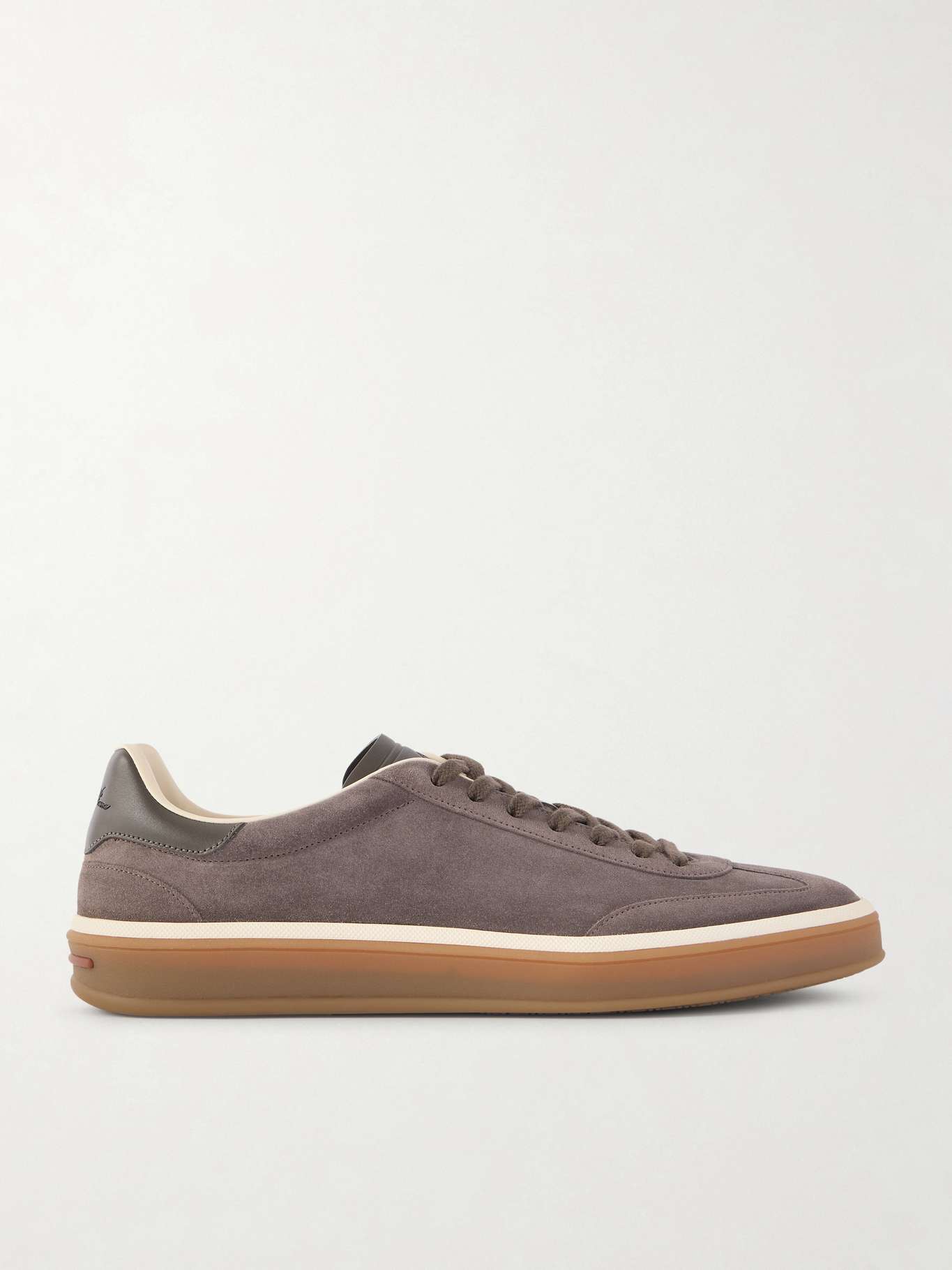 LORO PIANA Tennis Walk Leather-Trimmed Suede Sneakers