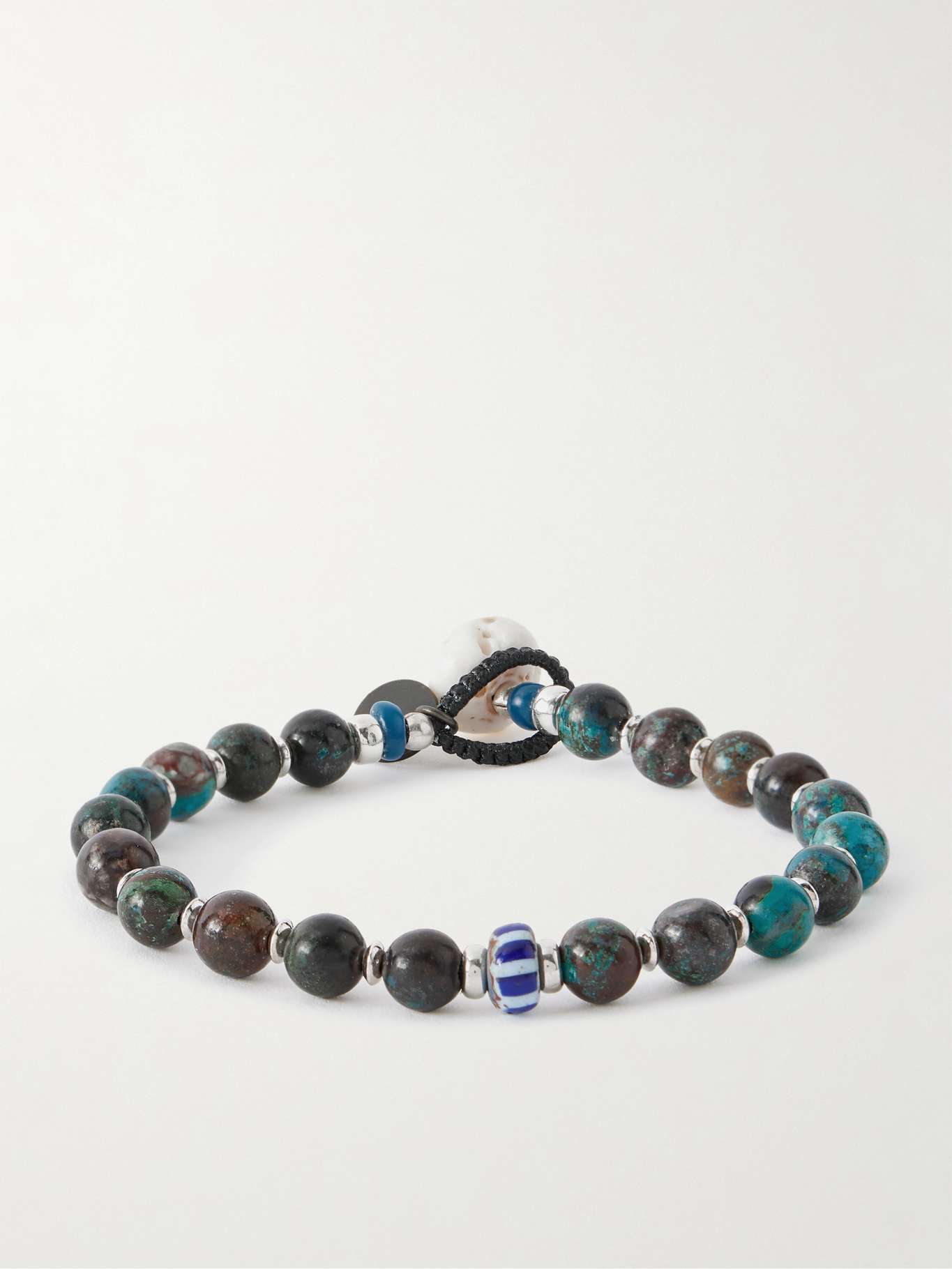 MIKIA Sterling Silver, Chrysocolla and Shell Beaded Bracelet