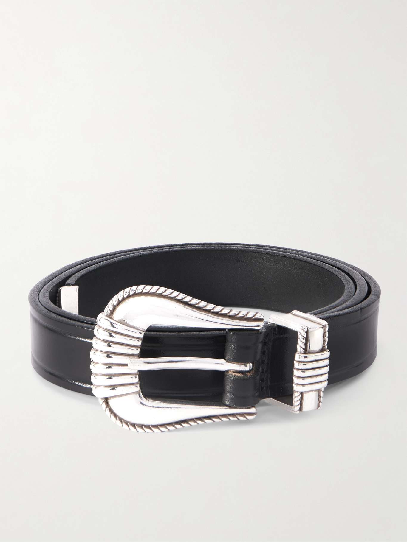 Monitaly's belt takes its cues from Western styles, with its ornate buckle, keeper and tip. It's been made in the US from English bridle leather and vegetable-tanned to enhance the grain.