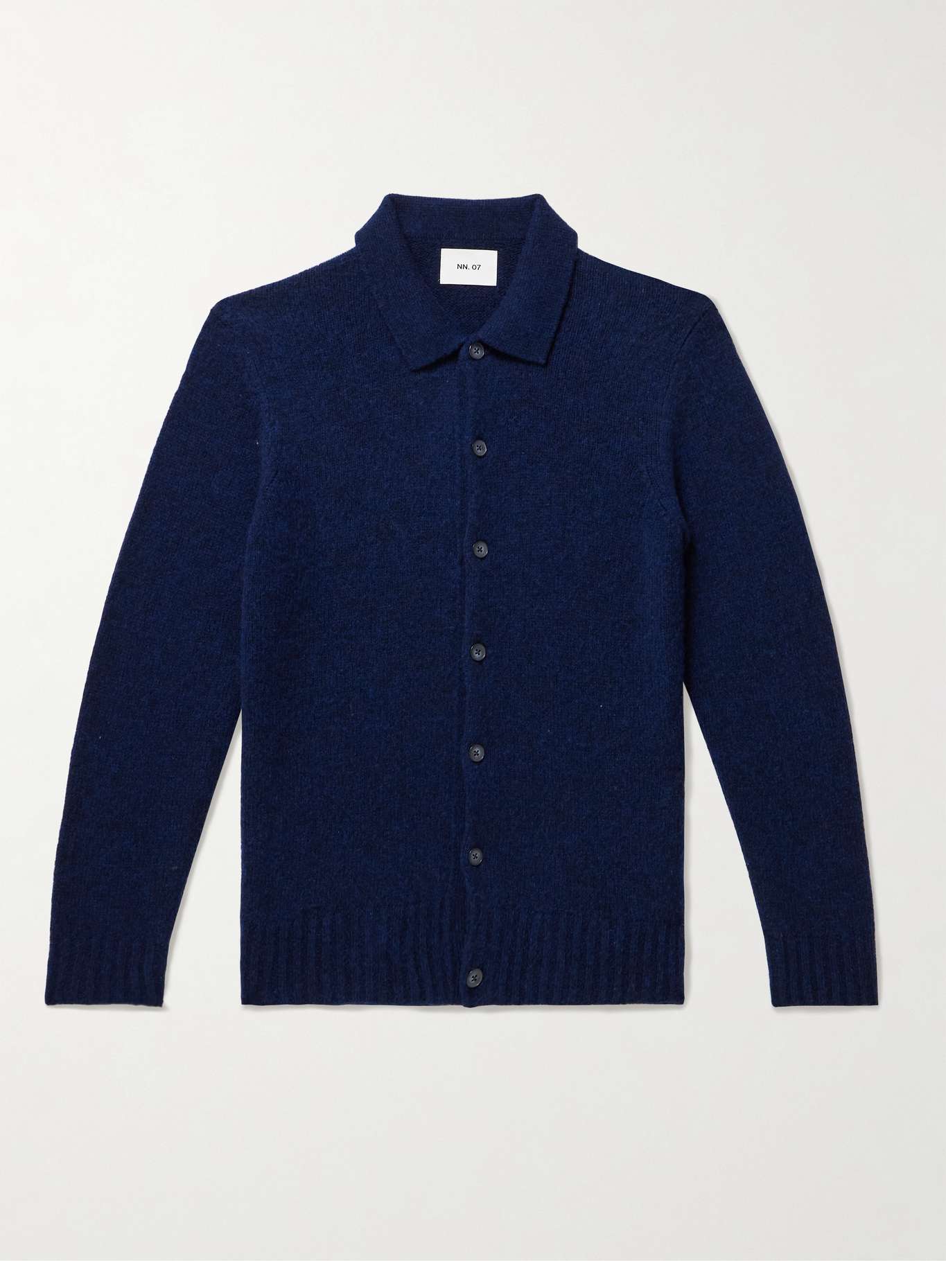 The letters in NN07 stand for 'No Nationality' and the brand designs "for a life without borders". This 'Lee 6598' cardigan is knitted from merino wool-blend and has a classic collar for a smarter feel. It makes a great layering piece, whether you're travelling or working.