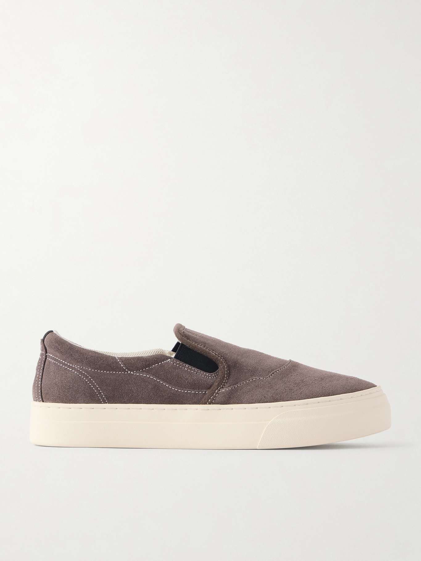 EXCLUSIVE AT MR PORTER. Omni is a "study in order and imperfection". Part of its inaugural collection, these slip-on 'Lister' sneakers are made from 'Silk' suede and threaded with contrasting topstitching.