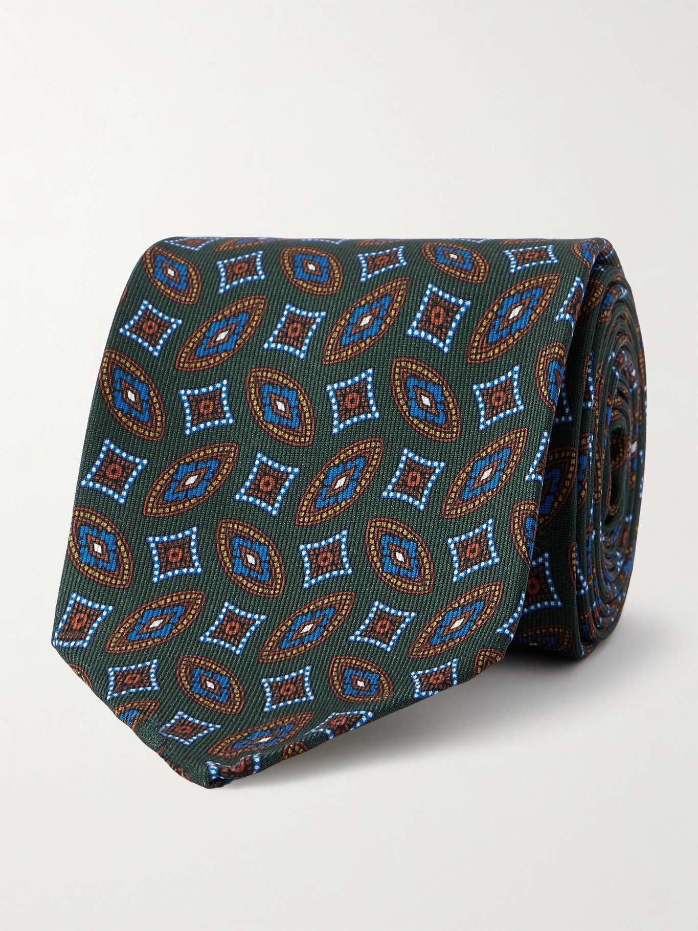 Rubinacci's tie is made from smooth silk mapped with a geometric pattern that'll add visual interest to your suiting. The wide 9cm blade makes it a real point of focus.