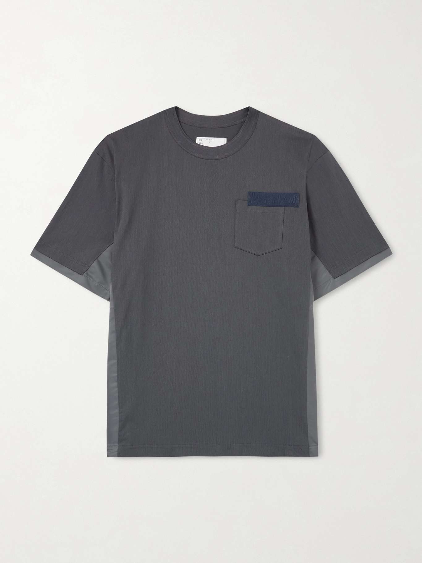 Sacai is a master at artful layering. Made from panels of shell and cotton-jersey, this T-shirt is designed to look like two stacked on top of each other. It's detailed with a front pocket and a twill appliqué above it.