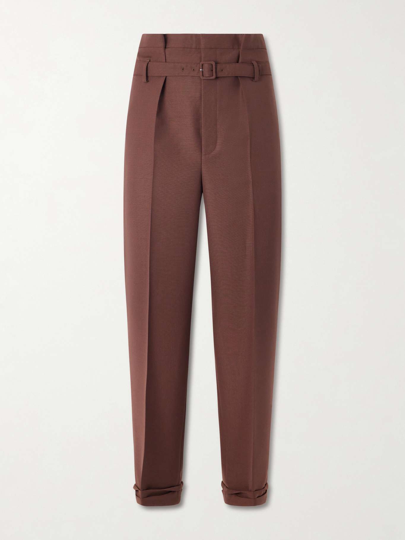 SAINT LAURENT Tapered Belted Pleated Wool and Mohair-Blend Trousers