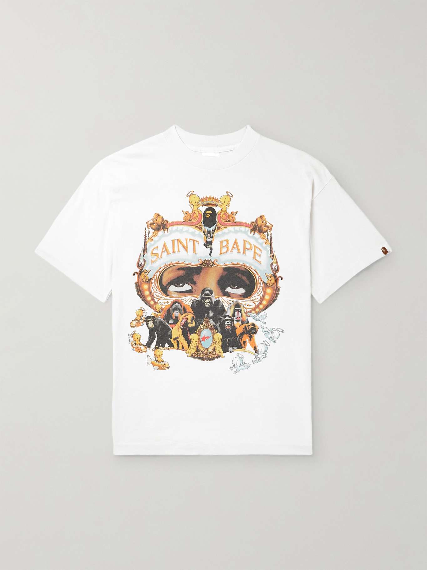 SAINT Mxxxxxx and BAPE® team up for a fourth collaborative capsule, blending visions of designer Yuta Hosokawa and artist Cali DeWitt. This 'Generation' T-shirt is cut for a boxy fit from cotton-jersey and features a highly detailed, surreal collage at the front and back.