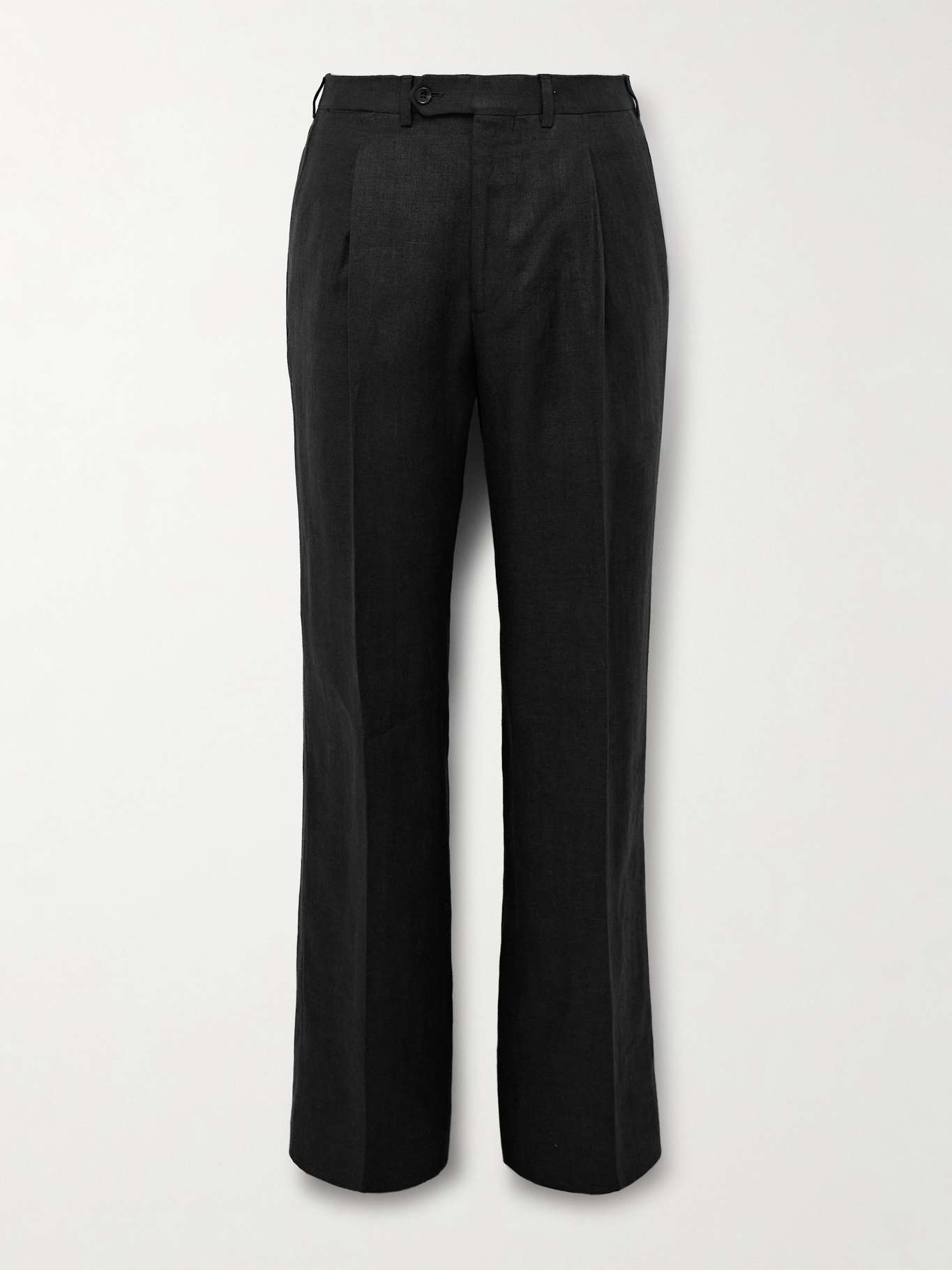 SAMAN AMEL Straight-Leg Pleated Linen Suit Trousers