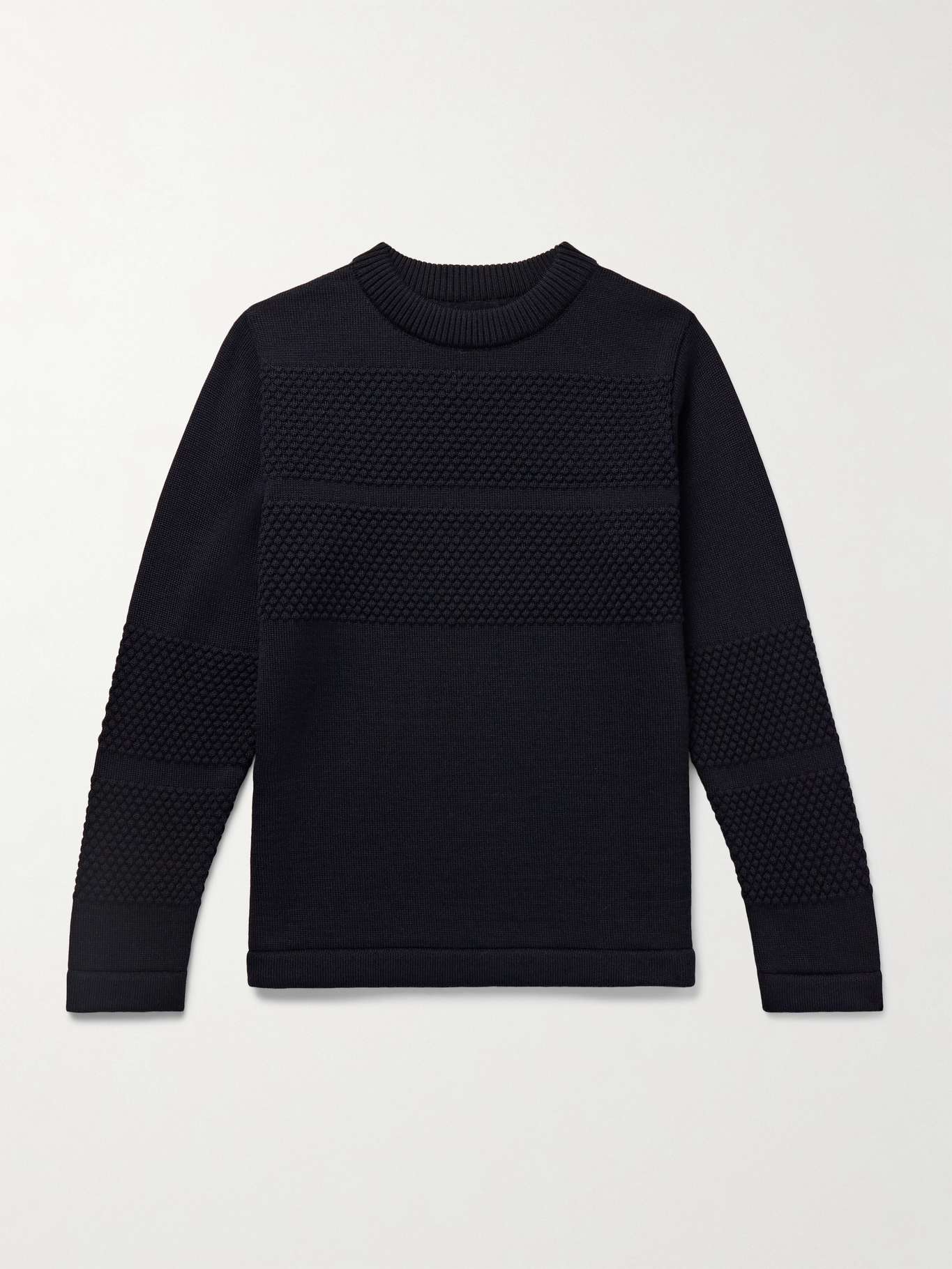 Søren Nielsen Skyt got his start as a young entrepreneur in 1919 selling knitwear - this 'Fisherman' sweater being one of his earliest offerings. Now an S.N.S. Herning signature, it's made from wool and detailed with an innovative 'bubble' pattern - it results in tiny pockets of air, originally developed to maximise the fabric's thermal characteristics.
