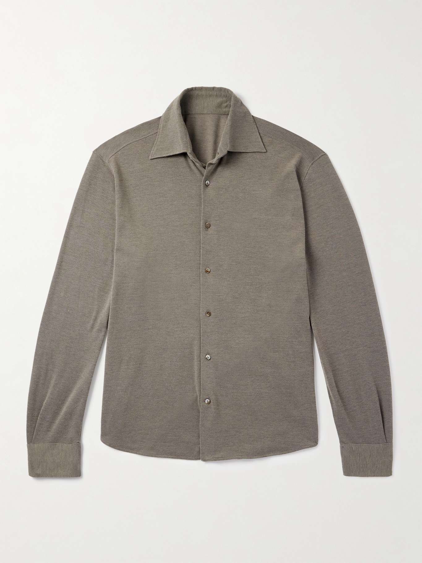 Stòffa co-founders Agyesh Madan and Nick Ragosta earned a name in made-to-measure, so they know a thing or two about tailoring. This shirt is knitted from high-twist cotton and silk-blend piqué – supplied by a second-generation clothier in Gallarate, Italy – and has a spread collar and pleated sleeves. Wear it for more casual occasions.