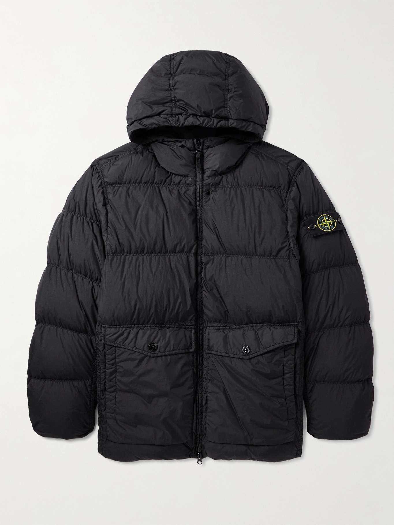 Stone Island's outerwear is made from innovative fabrics developed in the brand's in-house lab. Made from recycled-nylon, this down jacket is treated with a resin coating, which creates a wrinkled texture and makes it resistant to winds and light showers. Functional specs include roomy front pockets and a drawstring hood.